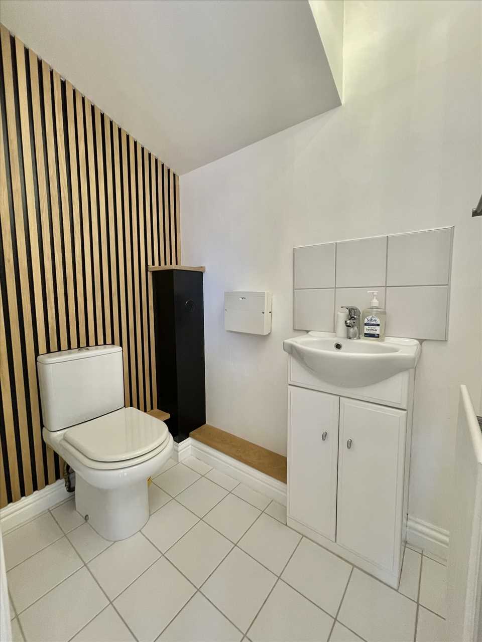Low level suite, vanity wash hand basin, radiator, ceramic tiled floor, ceiling extractor.