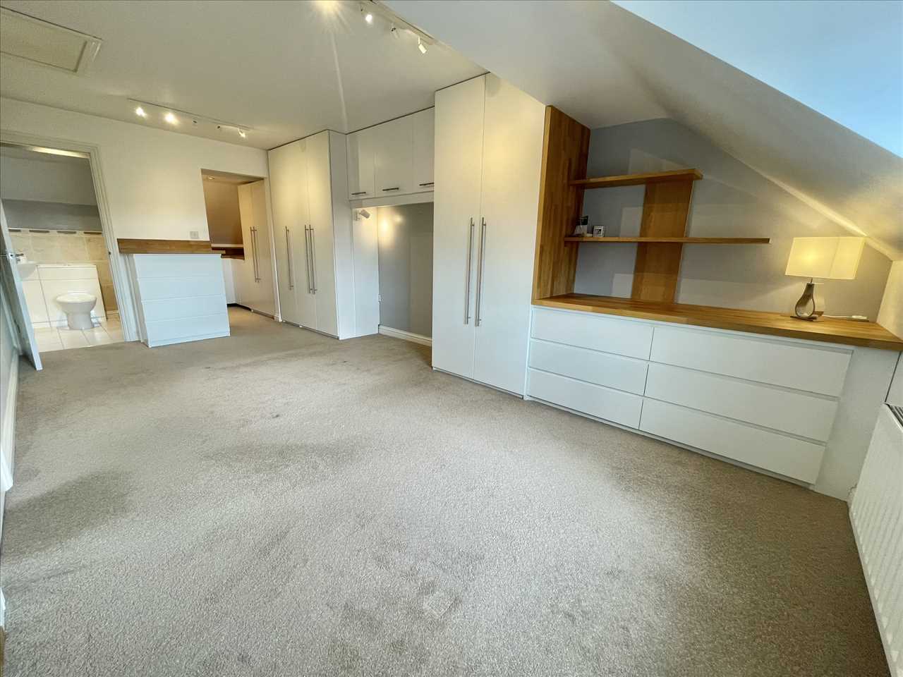 Wardobes, floor units and shelving, LED lighting, fitted carpet.