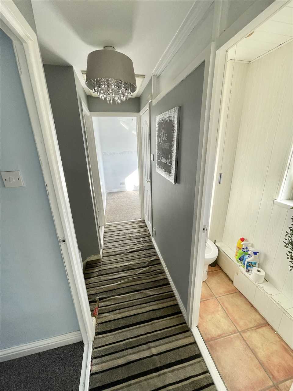 Upvc double glazed front door, upvc double glazed window to the front, twin panelled radiator, understairs cupboard, wood style fitted wall/floor units, stainless steel one and a half bowl sink unit with mixer tap, plumbing for washer, range style cooker, overhead extractor hood, upvc double glazed window to the rear, upvc double glazed back door.
