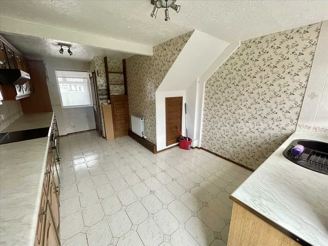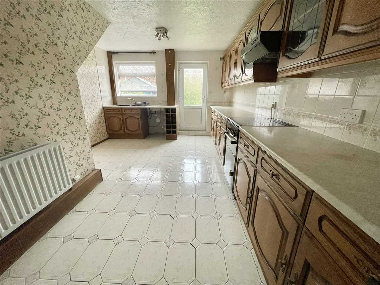 A range of antique wood fitted wall/floor units, single drainer one and a half bowl sink unit with mixer tap, gas cooker point, overhead extractor hood, ceramic tiled floor, plumbing for washer, twin panelled radiator, understairs cupboard, upvc double glazed windows to the front and rear, upvc double glazed back door.