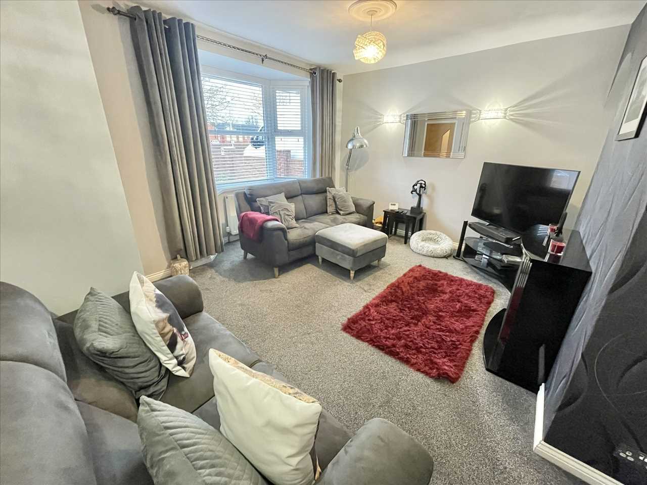 Fitted carpet, three wall lights, radiator, upvc double glazed bay window, venetian blinds, understairs cupboard.
