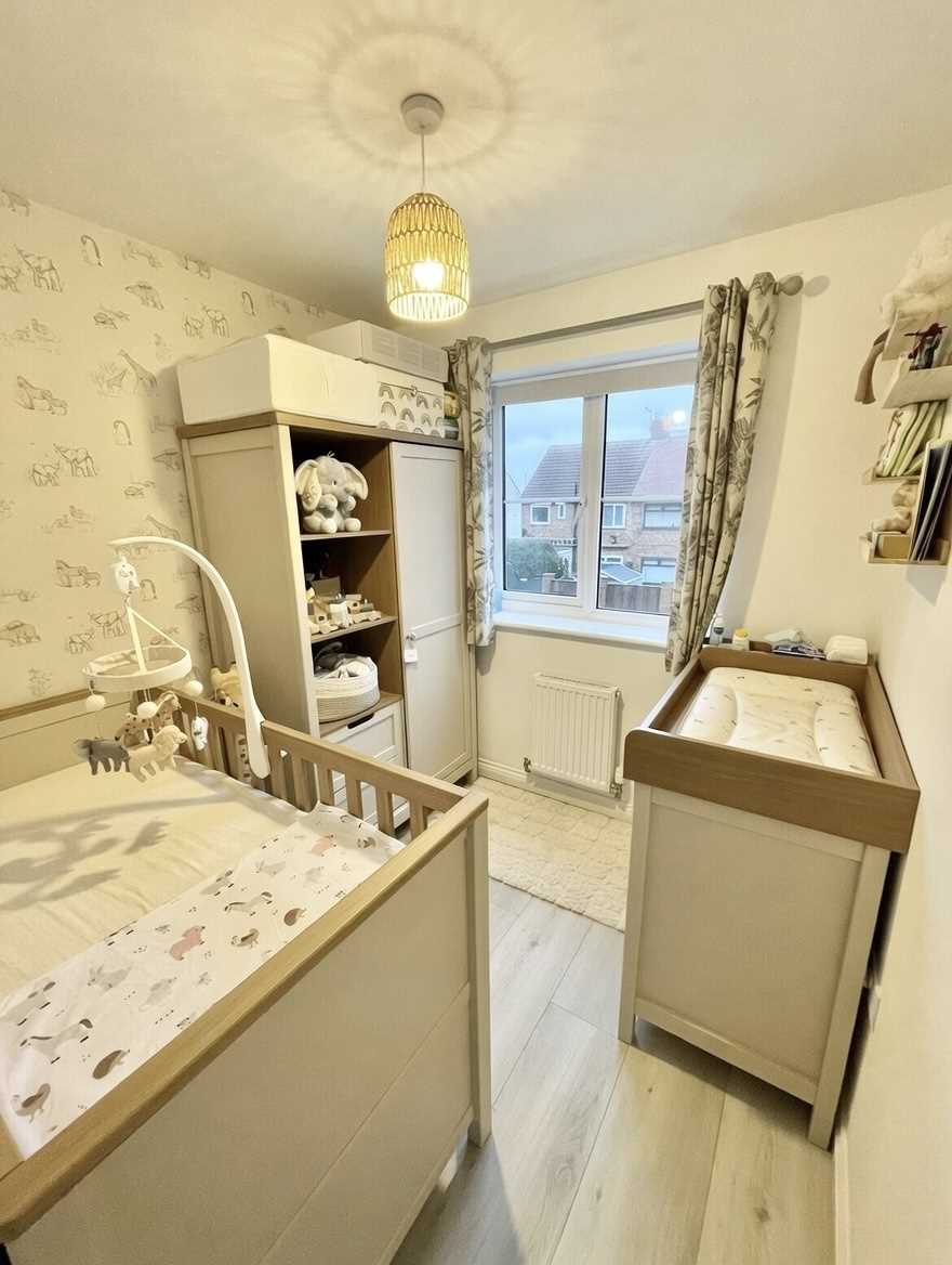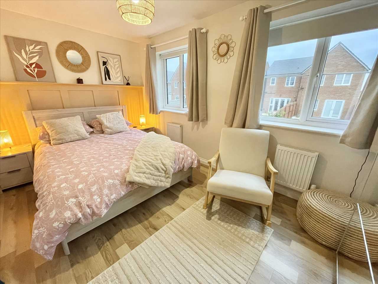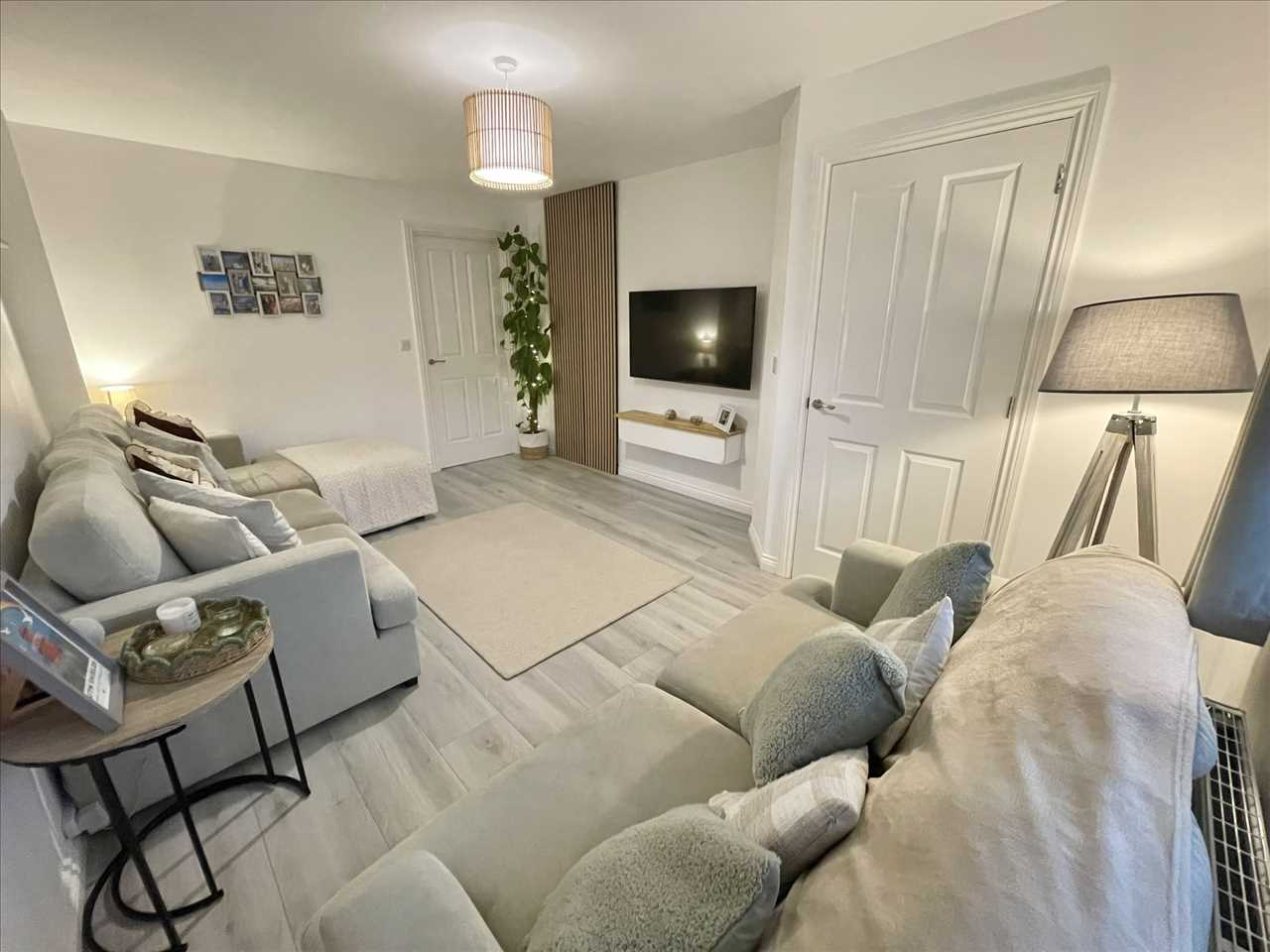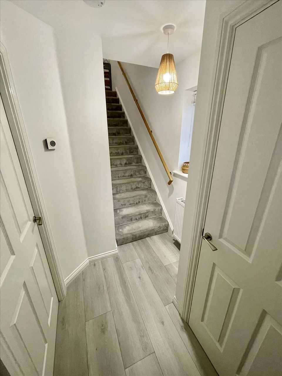 Composite double glazed front door, laminate flooring, radiator, upvc double glazed window, venetian blind, cupboard.