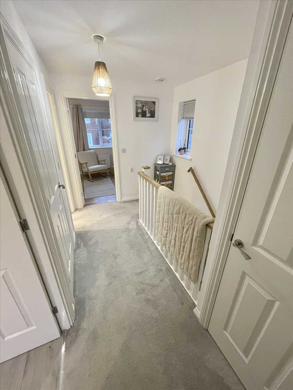 Fitted carpet, upvc double glazed landing window, venetian blinds, two cupboards,