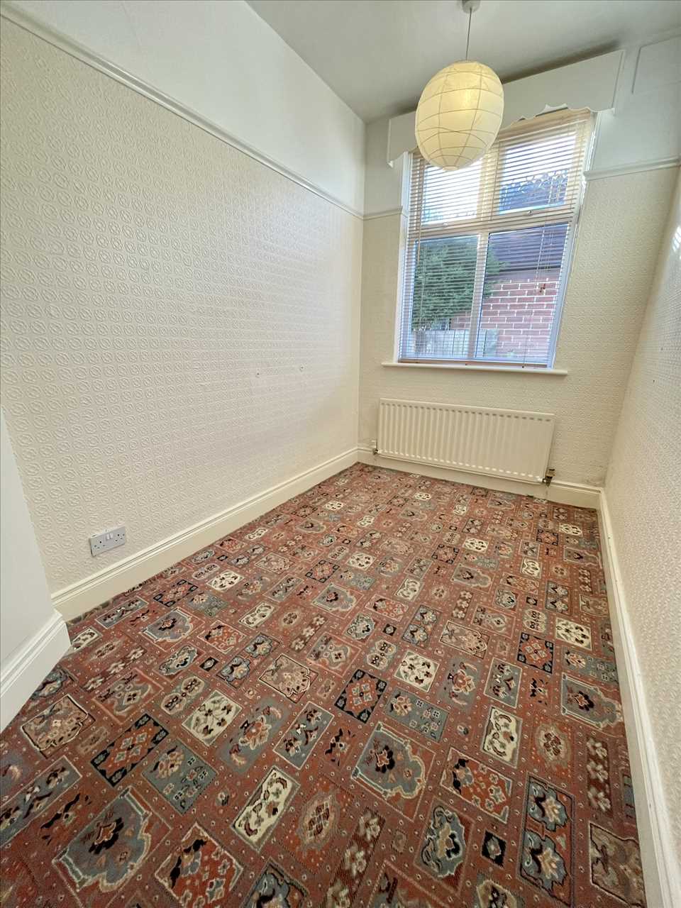 Fitted carpet, picture rail, radiator, cupboard, upvc double glazed window, wooden venetian blinds.