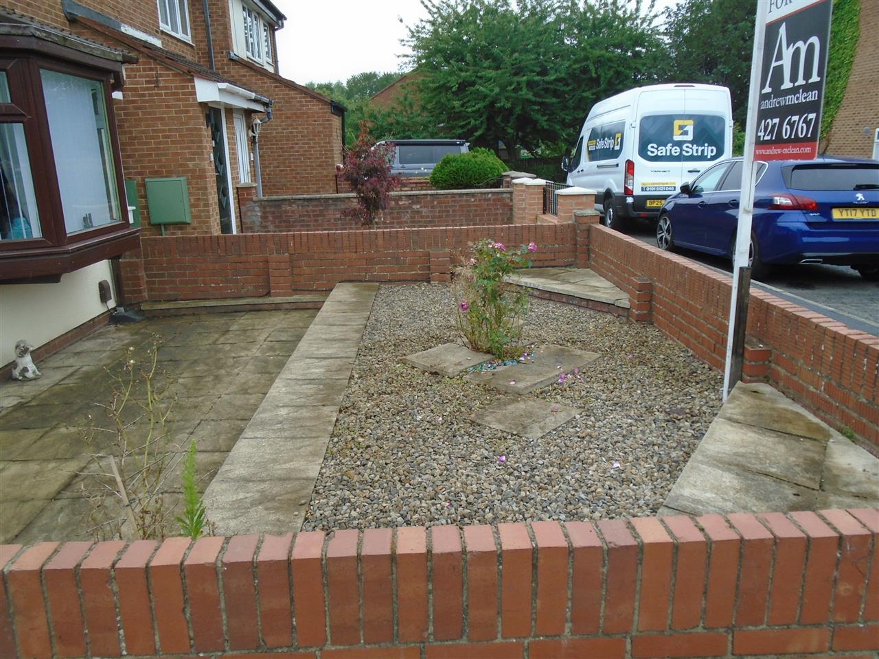 The property has a walled front garden with paving and gravel features with adjoining open plan driveway leading to the garage measuring some 5.3m x 2.53m with metal up and over door, power point, fluorescent light and boarded loft area with hatch. A side gate provides access to the wide rear garden with flower beds and gravelled areas, paved patio, pond feature and exterior power point.
